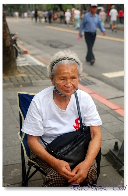 在徐州街口遇見這位阿嬤,快90歲了,跟著家人從土城趕過來
