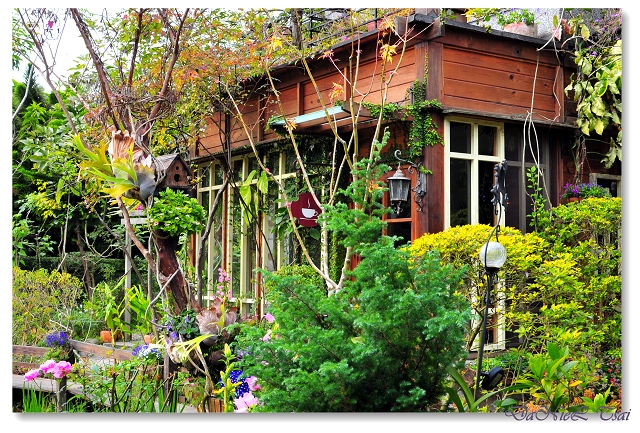 栽滿的繽紛與綠茵放肆地包圍了規模不小的木屋