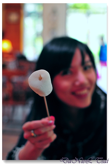 老闆娘看著我們樂在其中,這也端出了兩串棉花糖來~